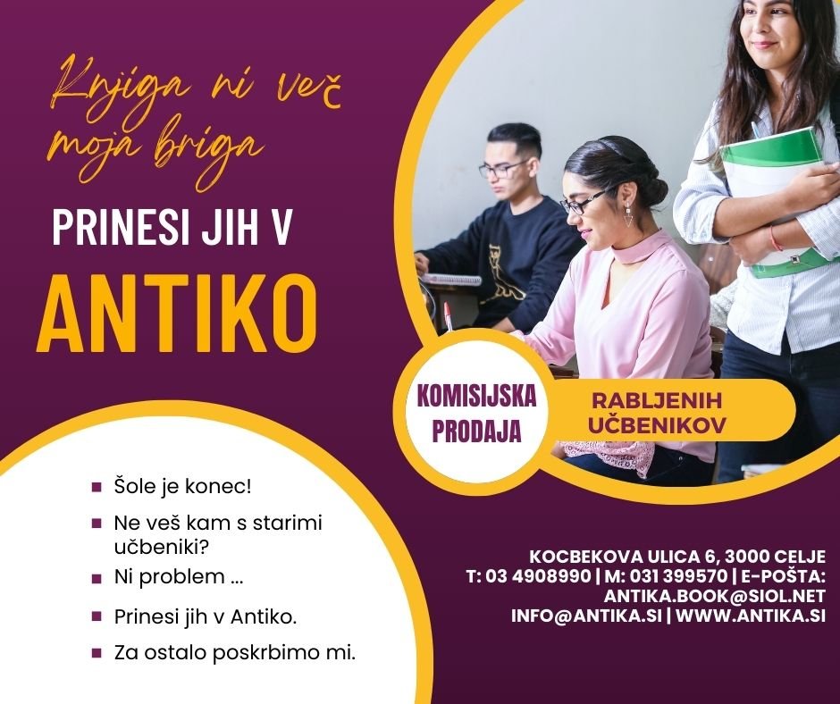 Spoštovani prijatelji, obiskovalci in kupci naše knjigarne in antikvariata Antika Celje obveščamo, da po 30. letih našega delovanja spreminjamo odpiralni čas!  ...